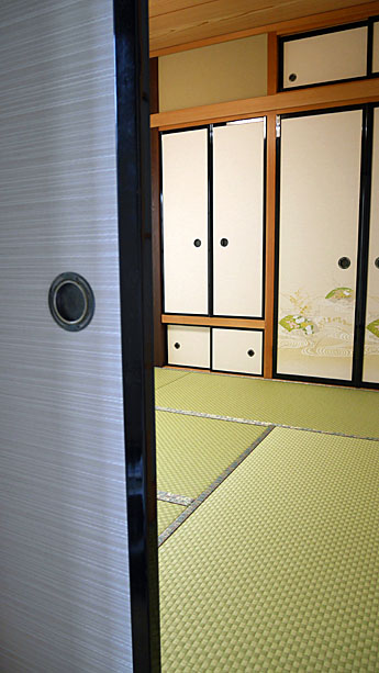 ○ ダイケン和紙畳 「銀白 市松 01」 畳縁 : 織部 No7 (高田織物) 表替 11,000円×6帖 66,000円 〇襖紙張替 上織物襖紙 「近江」 no916