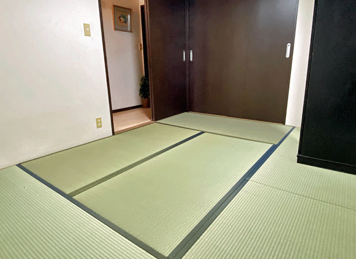 | 施工前 〜作業風景〜 ![]() お部屋の採寸 ![]() 畳製作 ![]() 家具移動・床掃除 ![]() 畳シート敷き込みから納品 |