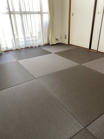 ○ ダイケン和紙畳 琉球畳 畳表 : 「清流 栗色」 畳床 : ダイケン畳床 厚み:55o 六畳間 新調 価格:11,500円×12帖 138,000円 (税込) 柱型切込み 1,000円 畳シート 400円×6帖分