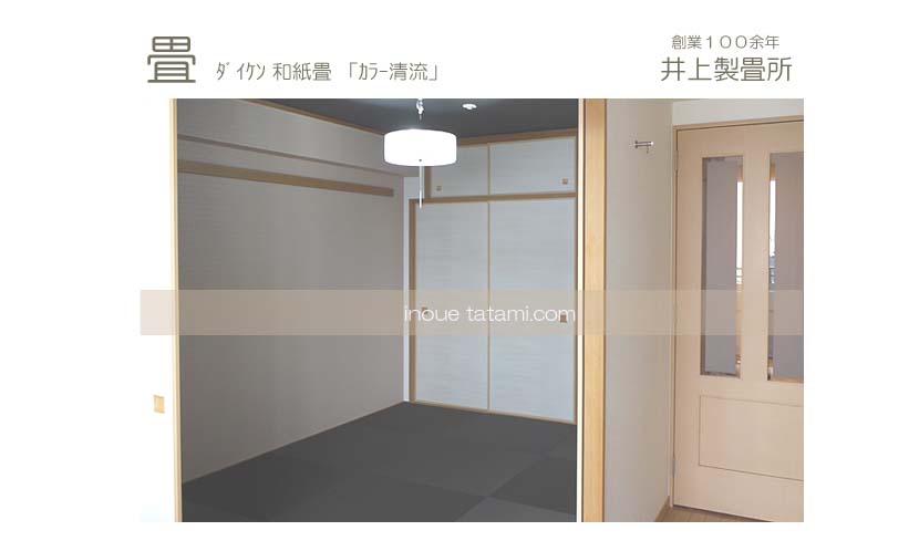 ダイケン和紙畳 琉球畳 「カラー琉球畳 栗色」 新調 11,500円 × 12帖 138,000円 ○ 襖張替 「凛Rin-絣Kasuri-no305」