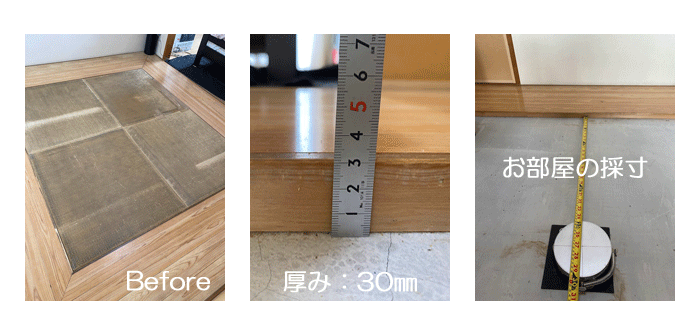 <お部屋の寸法・歪み・柱型・厚み等を正確に採寸し畳を製作致します>
