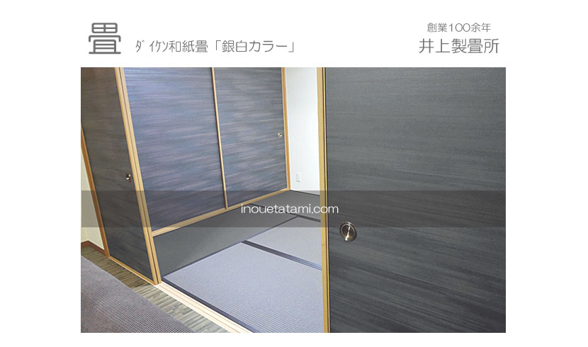 ダイケン和紙畳 「銀白カラー 栗色」 畳縁 : ストリーム 栗色 (高田織物) 新調 15,500円 × 6帖 93,000円 (税込) ふすま紙張替 凛No301