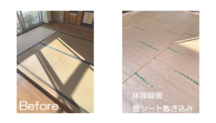○ ダイケン和紙畳 新調 「銀白 市松 01」 畳縁 : 大宮G 亀甲・黒 (高田織物) 畳床 : ダイケン畳床 厚み : 55o 新調 16,500円 × 6帖 99,000円 (税込) × 2部屋 +柱型切込み 〇畳シート 400円/帖