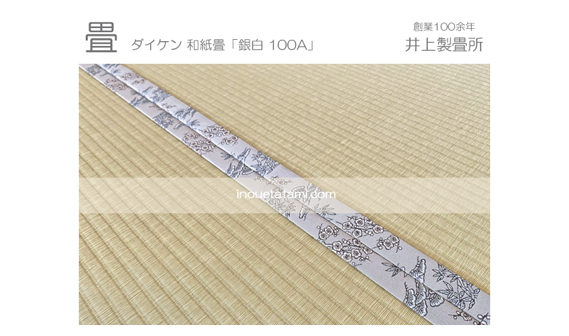 ○ ダイケン和紙畳 新調 畳表 : 銀白100A 銀白色 畳縁 : 花のエッセイ No300 松竹梅 (高田織物) 畳床 : ダイケン畳床 厚み : 30o 六畳間 新調 価格 : 15,500円 × 6帖 93,000円 (税込)
