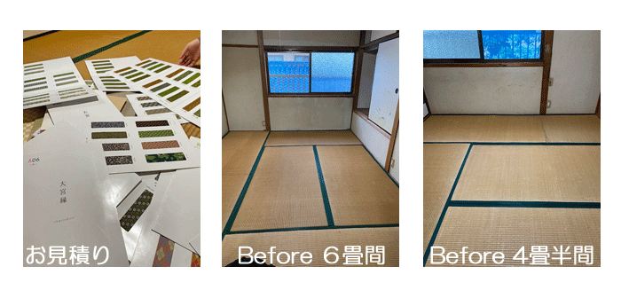 ![]() ![]() ![]() 「い草」の畳表から「ダイケン和紙畳表」に張替 |