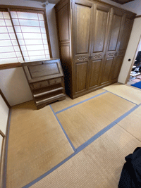 畳 納品(入替え)風景 ![]() ![]() ![]() 古畳を引取り床の掃除をします。 ご希望のお客様には畳シートを敷き込みます。 家具移動しながら畳を敷き込みます。 |