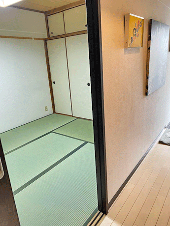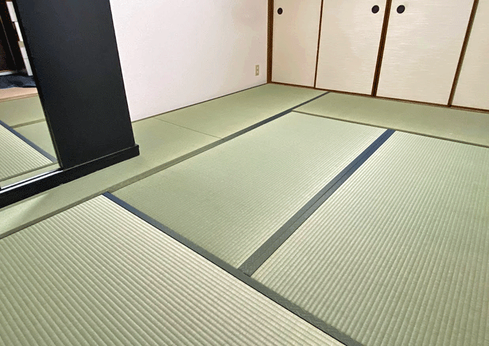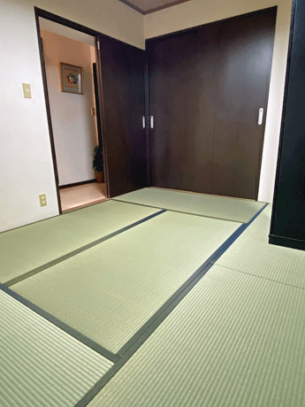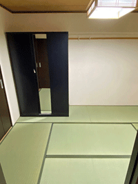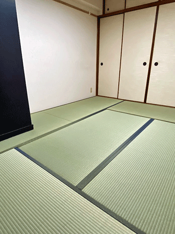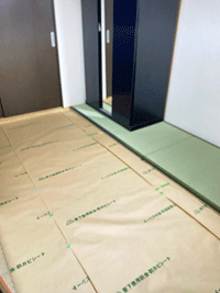 | 施工前 〜作業風景〜 ![]() お部屋の採寸 ![]() 畳製作 ![]() 家具移動・床掃除 ![]() 畳シート敷き込みから納品 |