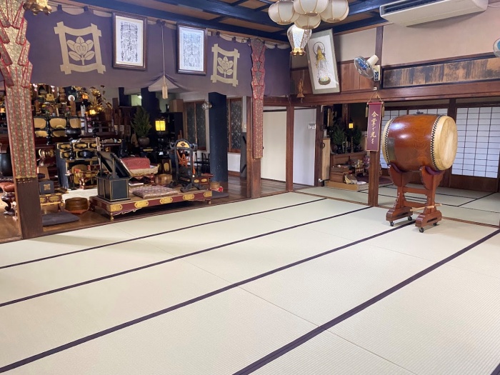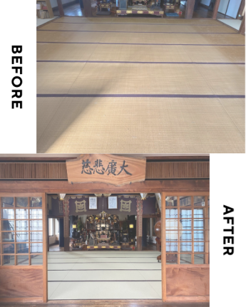 ○ ダイケン和紙畳 表替 畳表 : 「銀白100A 若草色」 畳縁 : 御座縁・茶色 厚み : 55o 本堂 十八畳間 表替 本間サイズ(幅90p以上) 価格 : 10,000円×18帖 180,000円 (税込 二畳台 特注品