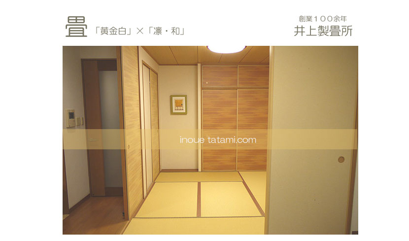 ○ ダイケン和紙畳表 「黄金白」 畳縁 : コンフォート 花模様 No103 (石田織布) 表替 8,800円 × 6帖 52,800円 ○ 襖紙張替 押入張替(裏紙貼)「凛」no.309/飴色 押入天袋(裏紙貼)「凛」no.309/飴色 越前和紙襖紙「和」no.534 × 新鳥の子襖紙「凛」no.307支子色)