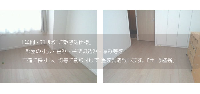 <お部屋の寸法・歪み・柱型・厚み等を正確に採寸し畳を製作致します>