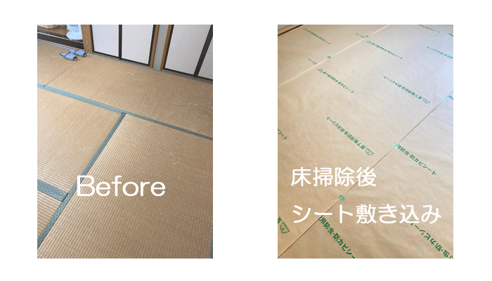 <お部屋の寸法・歪み・柱型・厚み等を正確に採寸し畳を製作致します>