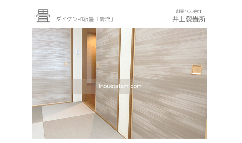 ○ ダイケン和紙畳 琉球畳 「清流カラー 灰桜色」 ダイケン畳床 厚み:30o 六畳間 新調 11,500円 × 12枚 138,000円 (税込) ○ 襖紙張替 ルノン ・ 凛 rin No310 丈長サイズ 4枚 幅広サイズ 押入 2枚 幅広サイズ 天袋 2枚 引手 新調 ビドー (樹脂製)