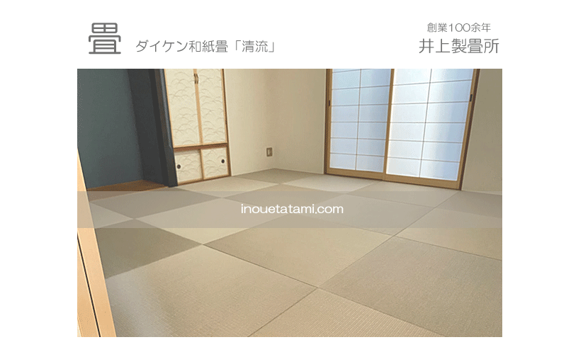 ○ ダイケン和紙畳 琉球畳 「清流カラー 灰桜色」 ダイケン畳床 厚み:30o 八畳間 新調 11,500円 × 16枚 184,000円 (税込) ○ 畳シート (床掃除後に敷き込み) ○ 襖紙張替 角兵衛 No620