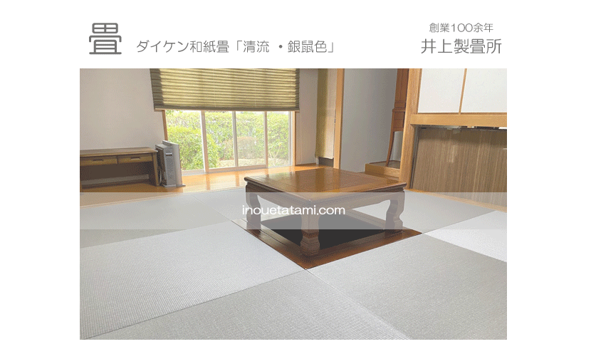 ○ ダイケン和紙畳 琉球畳 「清流 銀鼠色」 本間サイズ(幅90p以上) 堀炬燵仕様 表替 9,500円 × 8枚 76,000円 (税込) ○ ふすま紙張替 麗/うらら (No85 桜柄) 上新鳥の子襖紙 舞鳳 (No20 若松) 本鳥の子・手漉き和紙 最高級襖紙 引手 新調 ツキエスS-634 真鍮製