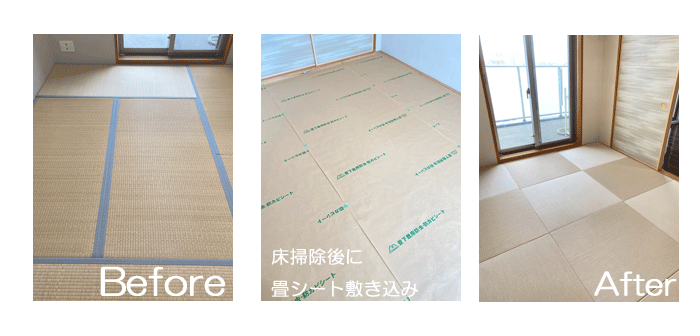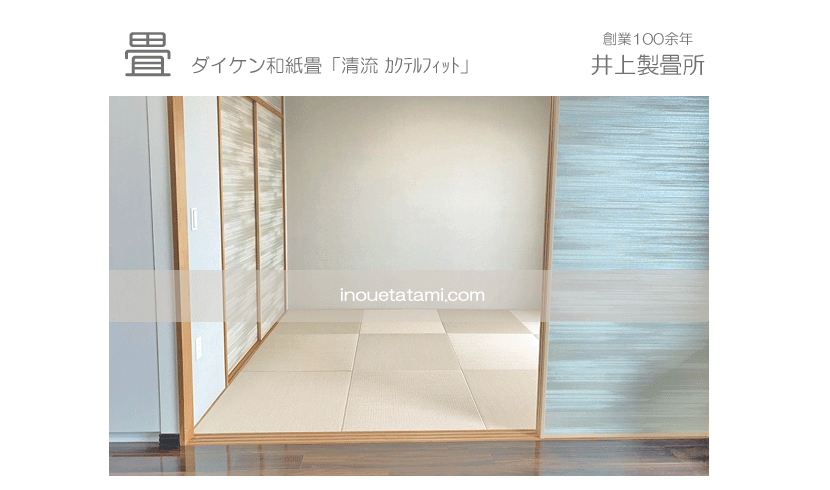 ○ ダイケン和紙畳 琉球畳 「清流 カクテルフィット No17」 (灰桜色と白茶色のミックス和紙畳表) ダイケン畳床 厚み:30o 六帖間 新調 11,500円 × 12枚 138,000円 (税込) 畳シート 400円/帖 (床掃除後に敷き込み)