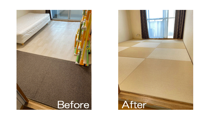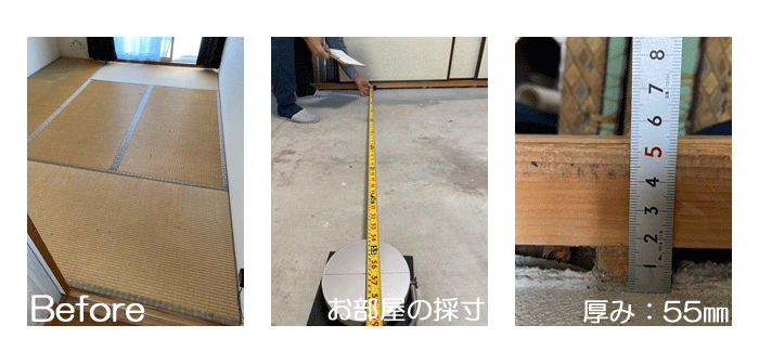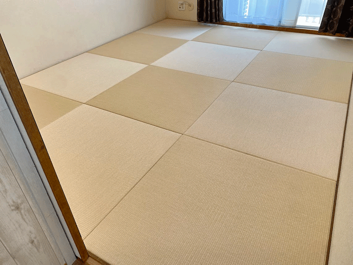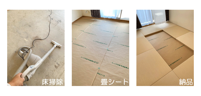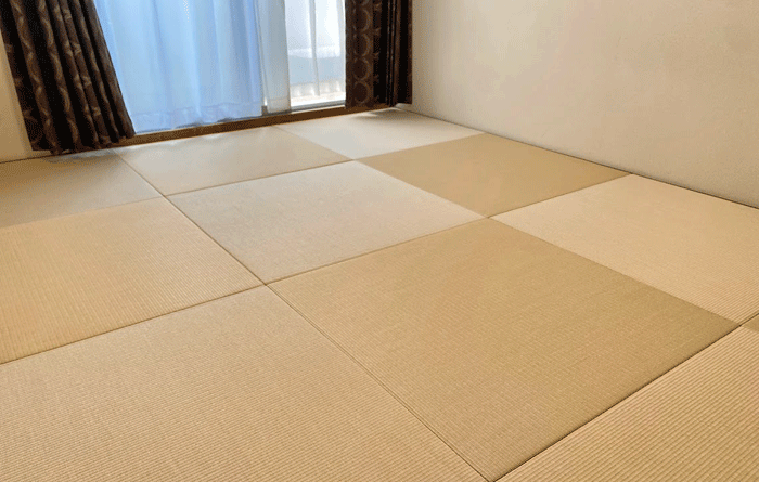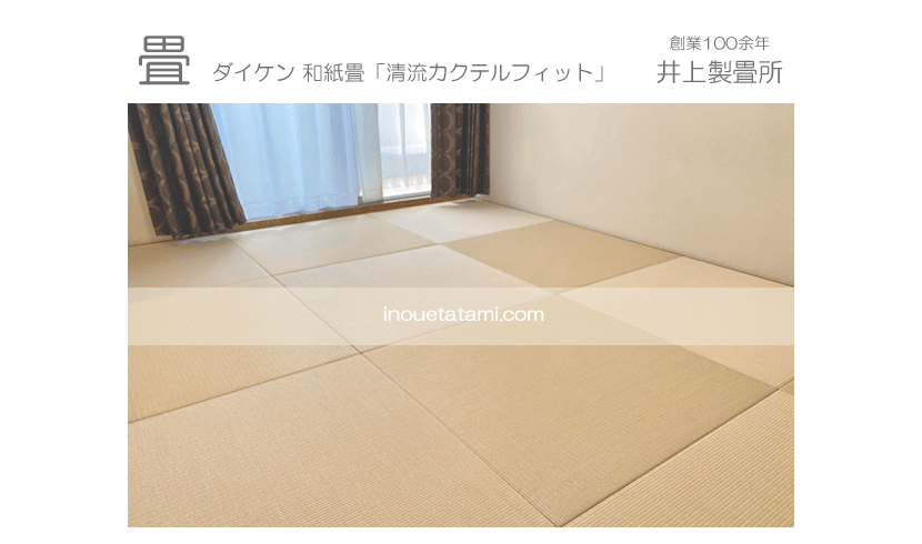 ○ ダイケン和紙畳 琉球畳 畳表 : 「清流カクテルフィットNo15」 畳床 : ダイケン畳床 厚み:55o 六畳間 新調 価格 : 11,500円×12帖 138,000円 (税込) + 畳シート (床掃除後に畳シート敷き込み) 400円/帖