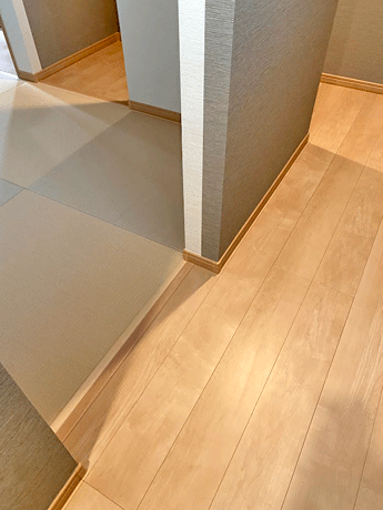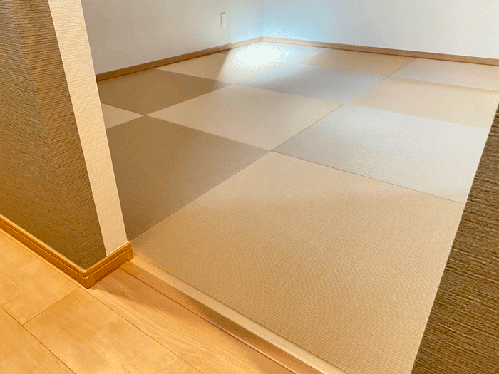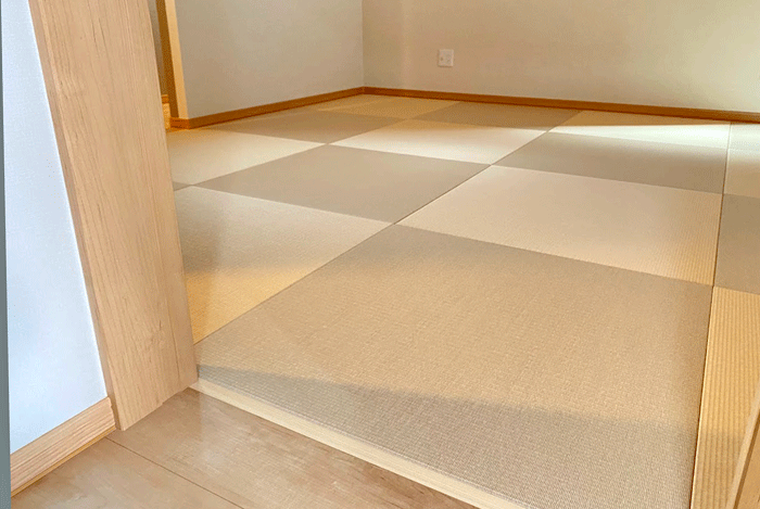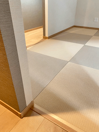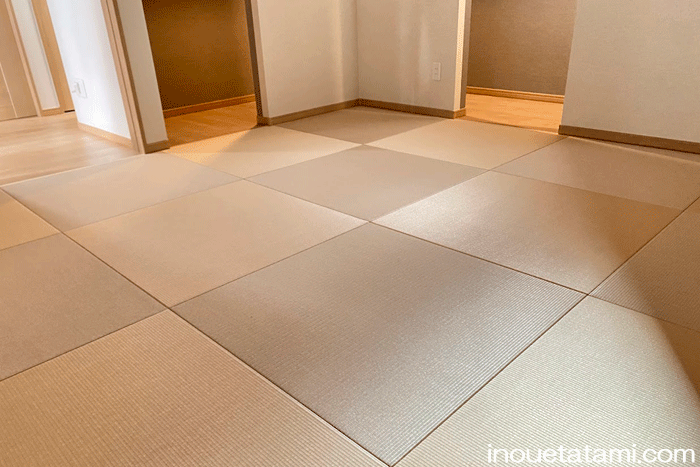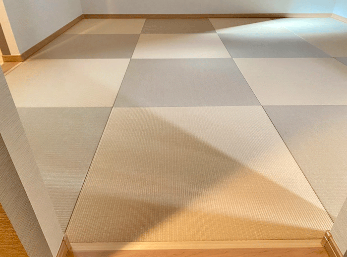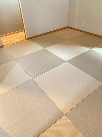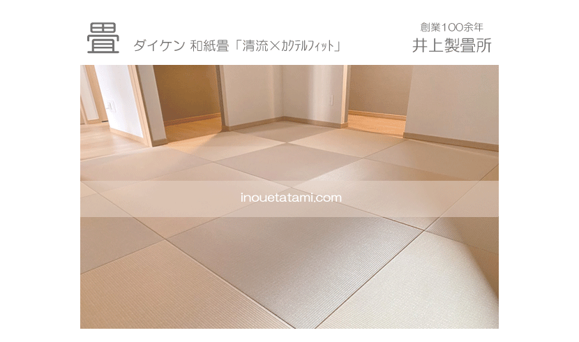 ○ ダイケン和紙畳 琉球畳 畳表 : 「清流 白茶色」 × 「清流カクテルフィットNo17」 畳床 : ダイケン畳床 厚み:55o 八畳間 新調 価格 : 11,500円×16帖 184,000円 (税込) + 畳シート