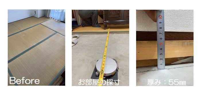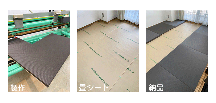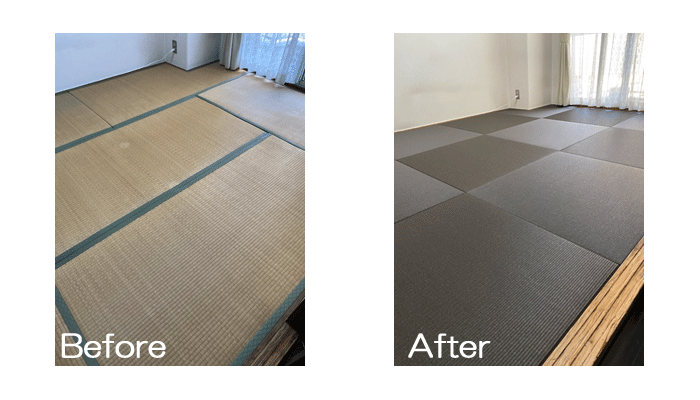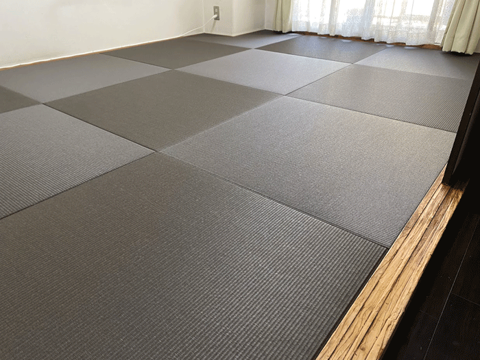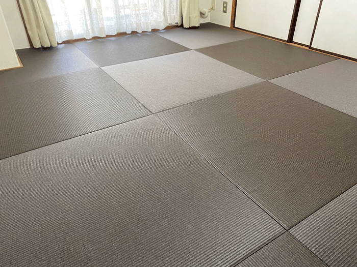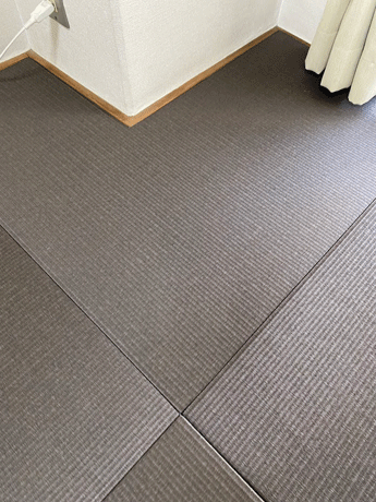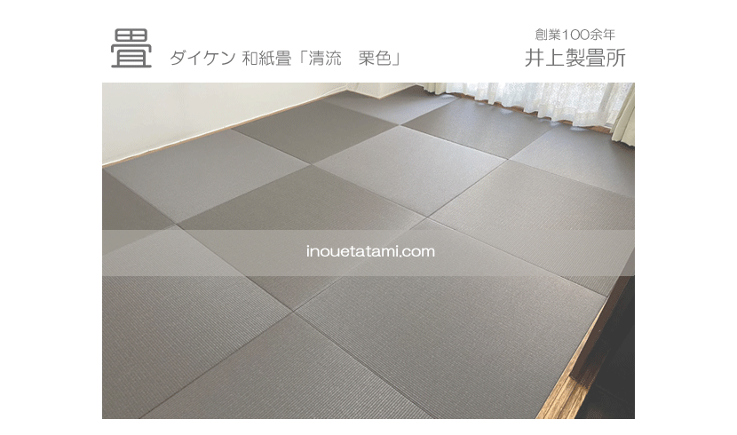 ○ ダイケン和紙畳 琉球畳 畳表 : 「清流 栗色」 畳床 : ダイケン畳床 厚み:55o 六畳間 新調 価格:11,500円×12帖 138,000円 (税込) 柱型切込み 1,000円 畳シート 400円×6帖分