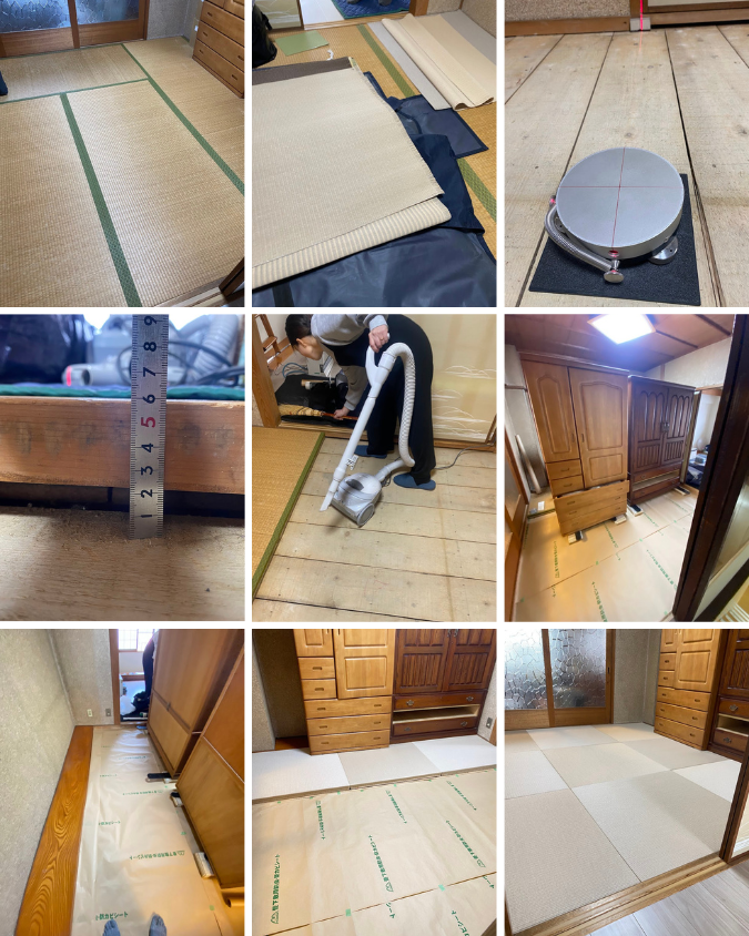 施工前〜お見積り・お部屋の採寸・製作・掃除後に畳シート敷き込み・納品 ![]() |