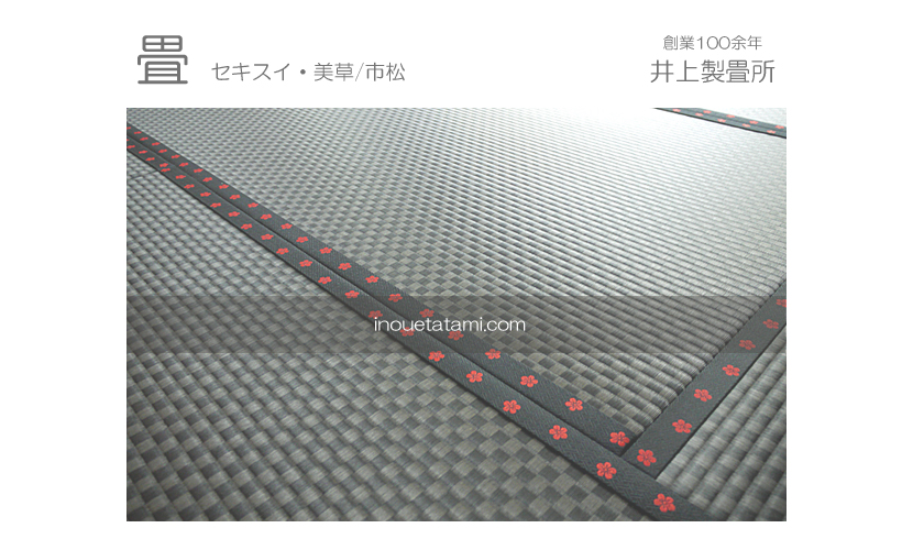 ○ セキスイ 美草 「黒市松」 × 「イエロー市松」 畳縁 : 「HANA香織V・No1」 × 「POLKA・No14」 (高田織物) 6畳間 × 2部屋 表替 11,000円 × 12帖 132,000円