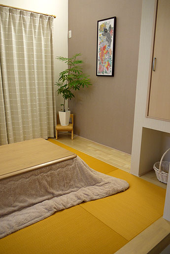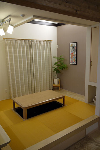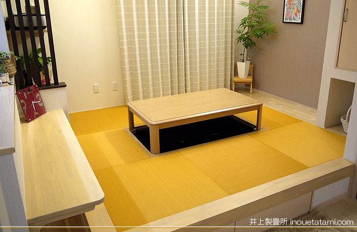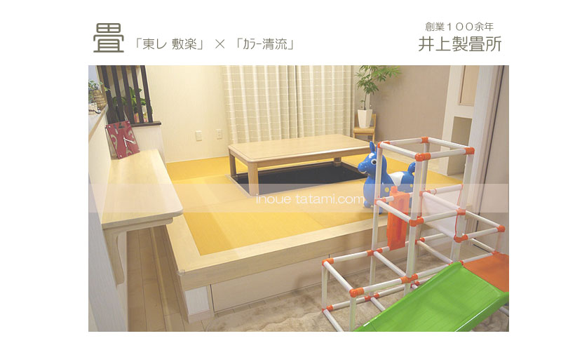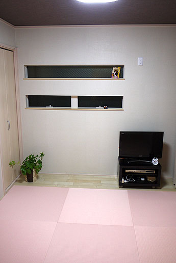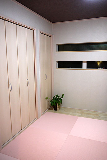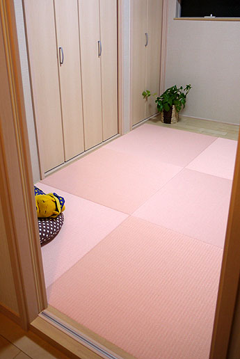 「東レ 敷楽」 キャメルイエロー 廃盤 × 「ダイケン和紙畳 カラー清流」 薄桜色