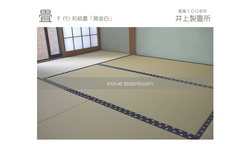 ○ ダイケン和紙畳表 「黄金白」 畳縁 : HANA 香織V No5 (高田織物) 表替 8,800円 × 6帖 52,800円 ○ 床の間 ダイケン和紙 「床龍 ・ 小目」 縁 : 「高麗縁 ・ 金七宝」